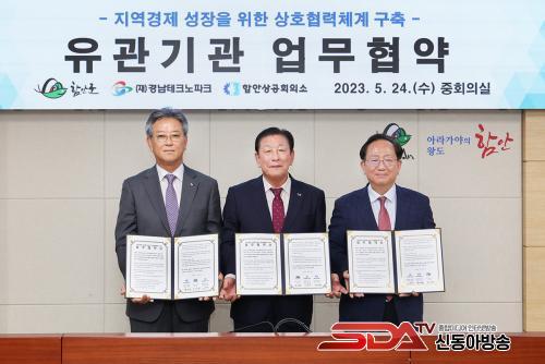 ³ëÃæ½Ä °æ³²Å×Å©³ëÆÄÅ© ¿øÀåÀº ¡°ÇԾȱº°ú »çÀü¿¡ ¿©·¯Â÷·Ê ÇùÀǰúÁ¤¿¡¼ ÇԾȱºÀÇ ¹Ì·¡»ê¾÷¿¡ ´ëÇÑ ±×¸²À» ±×·Á¿Ô½À´Ï´Ù. °æ³²Å×Å©³ëÆÄÅ©¿¡¼ ½ÃÇàÇÏ´Â ¸¹Àº ±â¾÷Áö¿ø»ç¾÷À» ÇԾȱº¿¡¼ Á¦´ë·Î Ȱ¿ëÇÑ´Ù¸é ±â¾÷¿¡¼ ü°¨ÇÏ´Â ÇýÅÃÀ» ¹ÞÀ» ¼ö ÀÖÀ» °Í¡±À̶ó¸ç ¡°ÇԾȻó°øÈ¸ÀǼҿ¡¼µµ ȸ¿ø»ç¿¡ °æ³²Å×Å©³ëÆÄÅ©ÀÇ Á¤Ã¥»ç¾÷À» È«º¸ÇÒ ¼ö ÀÖ´Â ±âȸ¸¦ ¸¶·ÃÇØÁֱ⸦ ºÎŹÇÑ´Ù°í µ¡ºÙ¿´½À´Ï´Ù.
