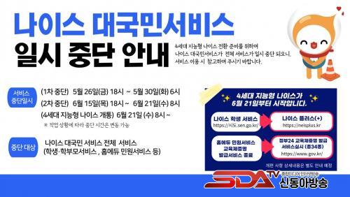 À̹ø ÀϽà Áß´ÜÀº ±³À°ºÎ¿¡¼ ±³À°ÇàÁ¤¾÷¹« È¿À²¼º Çâ»ó ¹× ±³À°°ü·Ã ´ë±¹¹Î¼ºñ½º ÆíÀǼº °È¸¦ À§ÇØ 4¼¼´ë Áö´ÉÇü ³ªÀ̽º ÀüȯÀ» ÁغñÇÏ´Â °³Æí ÀÛ¾÷À» ÇÏ´Â µ¥ µû¸¥ °ÍÀÌ´Ù.