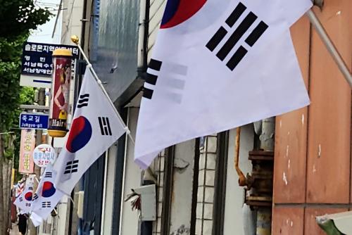 Áö³ 5ÀÏ À̸¥ ¾ÆÄ§ºÎÅÍ È¸¿øµéÀº ºÏÇ×»ç°Å¸®~Á×±³µ¿ »ï°Å¸® ¾à 500m ±¸°£ »ó°¡¿Í ÁÖÅÿ¡ ±¹±â 100¿©°³¸¦ °Ô¾çÇß´Ù.