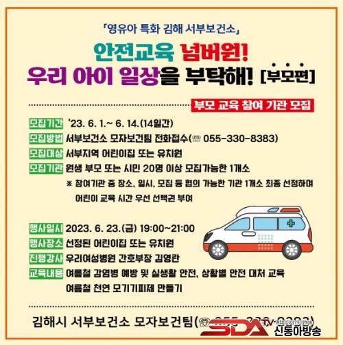 ÀÌ¿Í °ü·Ã, ¾î¸°ÀÌÁý ¿ø»ý 100¸íÀ» ´ë»óÀ¸·Î ÇÑ º°µµÀÇ ¾î¸°ÀÌ ±³À° ÇÁ·Î±×·¥µµ ÁøÇàÇÑ´Ù. ¼ºÎº¸°Ç¼Ò ¸ðÀÚº¸°ÇÆÀÀ¸·Î ÀüÈ(¢Î055-330-8383) ½ÅûÇÏ¸é µÇ°í Èñ¸Á ½Ã°£´ë¿¡ ¼±Âø¼øÀ¸·Î ¸ðÁýÇÑ´Ù. ÀÌ ÇÁ·Î±×·¥Àº ÀÌ´Þ 27ÀÏ ¼ºÎº¸°Ç¼Ò 3Ãþ ¼¼¹Ì³ª½Ç¿¡¼ ¼ºÎ¼Ò¹æ¼ ȲµÎ¹Î ¼Ò¹æÀåÀÌ ¾ÈÀü±³À°À» ÁøÇàÇϰí Âü¿© ¾î¸°À̵鿡°Ô ¾ÈÀü È£·ç¶ó±â¸¦ ¹èºÎÇÑ´Ù.