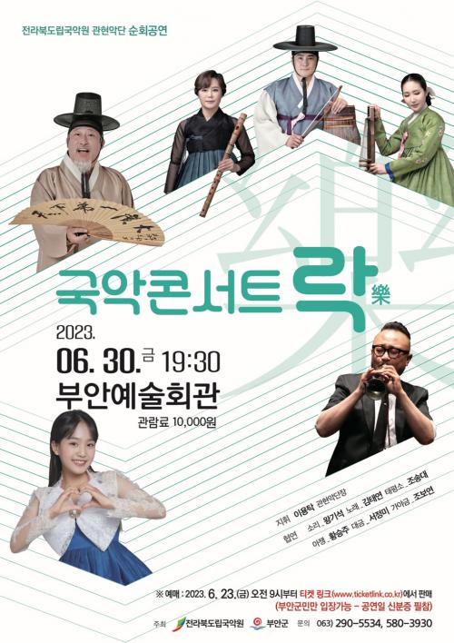 ºÎ¾È±º°ú ÀüºÏµµ¸³±¹¾Ç¿øÀÌ ÁÖÃÖÇÏ´Â <±¹¾ÇÄܼƮ ¡®¶ô¡¯> °ø¿¬Àº Àü¶óºÏµµ¸³±¹¾Ç¿ø °üÇö¾Ç´Ü ÆÀ°ú ÇÔ²² ¿ì¸®À½¾ÇÀÇ µ¶Ã¢¼º°ú ¿ì¼ö¼ºÀ» ³Î¸® ¾Ë¸®°íÀÚ ±âȹµÇ¾ú´Ù. ÀÌ ±¹¾ÇÄܼƮ´Â ÀÌ¿ëŹ(ÁöÈÖÀÚ), ±èÅ¿¬(³ë·¡), ¾ÆÀï(Ȳ½ÂÁÖ) µî ´Ù¾çÇÑ Ã⿬ÁøÀÌ Çù¿¬ÇÏ¿© ´Ùä·Ó°Ô Ç®¾î³ª°¥ ¿¹Á¤ÀÌ´Ù.