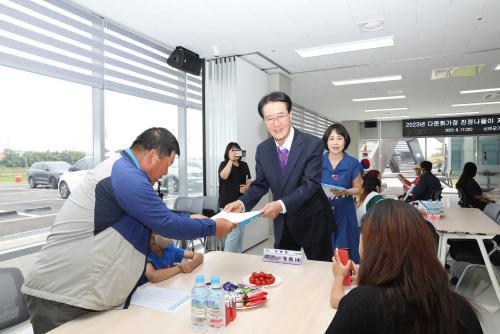 Áö³­ 6¿ù 17ÀÏ ½Å¾È±º °¡Á·¼¾ÅÍ È¸Àǽǿ¡¼­ ´Ù¹®È­°¡Á· Ä£Á¤³ªµéÀÌ Áö¿ø»ç¾÷¿¡ ¼±Á¤µÈ 11°¡Á¤, 22¸íÀÇ ºÎºÎ¿Í 18¼¼ ¹Ì¸¸ ÀÚ³à 26¸íÀÌ Âü¼®ÇÑ °¡¿îµ¥ Ä£Á¤³ªµéÀÌ À§ÇÑ Ç×°ø±ÇÀ» ¹èºÎÇϰí ÀÏÁ¤ ¹× À¯ÀÇ »çÇ×À» Àü´ÞÇß´Ù.