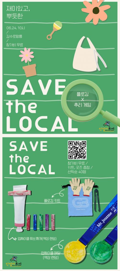 ¡®Save the local¡¯Àº ¿À´Â 6¿ù 24ÀÏ Åä¿äÀÏ ¿ÀÀü 10½Ã¿¡ °³ÃֵȴÙ. Âü°¡°¡ È®Á¤µÇ¸é Âü¿©ÀÚ¿¡°Ô »ýºÐÇØ¼º ºÀÅõ¿Í Áý°Ô, Àå°©À¸·Î ±¸¼ºµÈ Ç÷αë ŰƮ°¡ ¹«»ó ÁõÁ¤µÇ¸ç º» Çà»ç¸¦ ¿ÏÁÖÇÑ Âü¿©ÀÚ¿¡°Ô´Â ÆóÇÃ¶ó½ºÆ½À» ¾÷½ÎÀÌŬÇÑ Æ©ºêÂ¥°³¿Í ¡®Save the local¡¯ ¿ÏÁÖ ¸Þ´ÞÀÌ Ãß°¡ ÁõÁ¤µÈ´Ù.