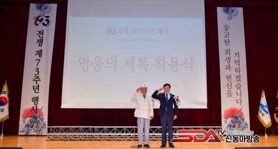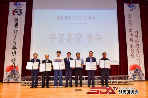 ƯÈ÷ 6¸íÀÇ 6․25 ÂüÀü¿ë»çµéÀÇ ¹«°øÈÆÀåÀ» À¯Á·µé¿¡°Ô Àü´ÞÇÏ´Â Àü¼ö½Ä°ú ÂüÀü¿µ¿õµéÀÇ »çȸÀû Á¸°æ½É°ú »ó¡¼ºÀ» ´ãÀº Á¦º¹ Âø¿ë½ÄÀ» ¿¾î ±¹°¡¸¦ À§ÇÑ °øÇå°ú Èñ»ý¿¡ °¨»ç¸¦ ÀüÇß´Ù.