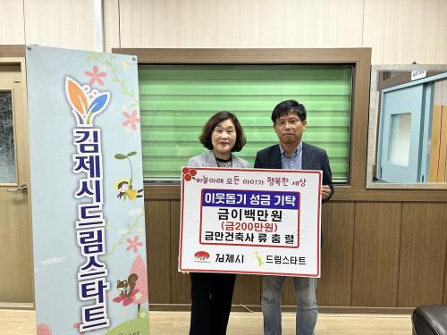 ÈÄ¿ø±ÝÀ» ÄèôÇÑ ±èÁ¦½Ã ¼ÒÀçÀÇ ±Ý¸¸°ÇÃà»ç´Â 2010³âµµ¿¡ ¼³¸³µÈ ÀÌ·¡·Î ¸¸Á·µµ ³ôÀº °ÇÃ༳°è¡¤¼ºñ½º¸¦ Á¦°øÇÏ´Â ¾÷ü·Î, ÇØ¸¶´Ù ±èÁ¦½Ã µå¸²½ºÅ¸Æ®¿¡ 200¸¸¿ø¾¿ ±âŹÇÏ´Â °Í ¿Ü¿¡µµ 11³â° ¸Å³â Ȳ»ê¸éÀÇ ¾Æµ¿, û¼Ò³âÀ» À§ÇÑ ÀåÇÐ±Ý ÈÄ¿ø ¹× °æ·Î´ç ÀÌ¿ë ¾î¸£½ÅµéÀ» À§ÇØ ¹é¹Ì¸¦ ±âºÎÇÏ´Â µî Áö¿ª»çȸ ȯ¿ø¿¡ Áö¼ÓÀûÀÎ ³ë·ÂÀ» ±â¿ïÀ̰í ÀÖ´Ù.