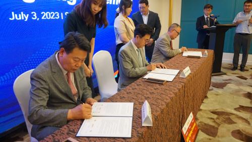 ¿À¼ºÈ¯ ½ÃÀå ¿Ü 3ÀÎÀ¸·Î ±¸¼ºµÈ À̹ø ´çÁø½Ã ±¹¿Ü ÃâÀå´ÜÀº 3ÀÏ Áß±¹ »óÇØ¿¡¼ °¢Á¾ µµ½Ã ±â¹Ý ½Ã¼³¿¡ Á¤º¸Åë½Å±â¼ú(ICT)À» Á¢¸ñÇÏ´Â ½º¸¶Æ® µµ½Ã ±â¹Ý ½Ã¼³ÀÎ ¡®½º¸¶Æ® Æú¡¯À» »ý»êÇÏ´Â ¾Ú¹ö¿Í ´çÁø½Ã ÅõÀÚ¿¡ ´ëÇÑ Çù¾àÀ» ü°áÇß´Ù.
