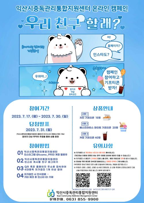 ¡®¿ì¸® Ä£±¸ ÇÒ·¡?¡¯Ä·ÆäÀÎÀº ÀÍ»ê½ÃÁßµ¶°ü¸®ÅëÇÕÁö¿ø¼¾ÅÍ È¨ÆäÀÌÁö ¹× SNS ä³Î °³¼³À» ±â³äÇÏ¿© ÀÍ»ê½Ã¹Îµé°ú ¼ÒÅëÀÇ ÀåÀ» ¸¶·ÃÇϰí Áßµ¶¹®Á¦¿¡ ´ëÇÑ ¿¹¹æ Á¢±Ù¼ºÀ» ³ôÀ̰íÀÚ ÃßÁøµÆ´Ù.