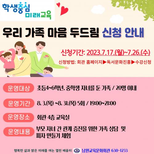 Âü¿©ÀÚ ¸ðÁýÀº 7¿ù 17ÀÏ(¿ù)ºÎÅÍ 7¿ù 26ÀÏ(¼ö)±îÁö ³²¿ø±³À°¹®Èȸ°ü ´©¸®Áý¿¡¼ ÁøÇàÇÏ¸ç ¸ðÁý Àοø Ãʰú ½Ã ´ÙÀڳడÁ¤, ´Ù¹®È°¡Á¤, Á¶¼Õ°¡Á¤, ÇѺθ𠰡Á¤ µî Ãë¾à °èÃþÀ» ¿ì¼± ¼±Á¤ÇÑ´Ù.