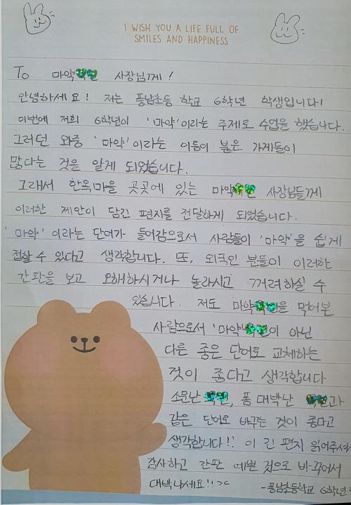Áö³­ 6¿ù 19~23ÀϱîÁö ¡¸¾à¹°¿¹¹æ ±³À°ÁÖ°£¡¹À» ¿î¿µÇϸ鼭 ¡®ÇÑ¿Á¸¶À» ¸¶¾à** ±¤°íÀÇ ¹®Á¦Á¡°ú ´ë¾È¡¯À» ÁÖÁ¦·Î Åä·Ð¼ö¾÷À» Çϰí, 5~6Çгâ 71¸íÀÇ ÇлýµéÀÌ ÀÛ¼ºÇÑ ÆíÁö¿´´Ù.