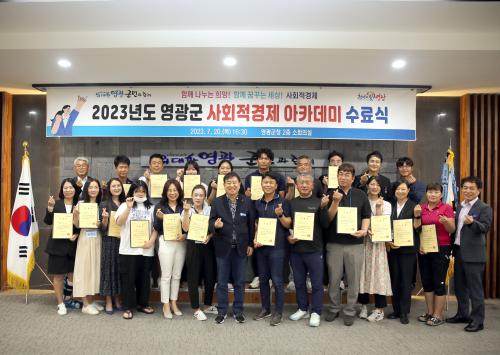 ¿µ±¤±ºÀÇ »çȸÀû°æÁ¦ Ȱ¼ºÈ¿Í »çȸÀû±â¾÷ ¿¹ºñ â¾÷ÀÚ ¹ß±¼ ¹× À°¼ºÀ» À§ÇØ ¸¶·ÃµÈ »çȸÀû ¾ÆÄ«µ¥¹Ì´Â Áö³ 6¿ù 8ÀÏ(¸ñ)¿¡ °³°ÇÏ¿© 7¿ù 20ÀϱîÁö 7ÁÖ°£ 7ȸ¿¡ °ÉÃÄ ÁøÇàÇÏ¿´°í, 21¸íÀÌ ¿µ±¤±º¼ö·ÎºÎÅÍ ¼ö·áÁõÀ» ¹Þ¾Ò´Ù.