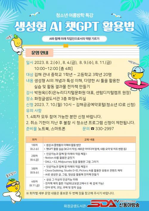 È­Á¤±Û»ùµµ¼­°ü, û¼Ò³â ¹æÇРƯ°­ ¡®»ý¼ºÇü AI êGPT Ȱ¿ë¹ý¡¯ ¿î¿µ - 10ÀϺÎÅÍ ¿Â¶óÀÎ ¼±Âø¼ø Á¢¼ö -