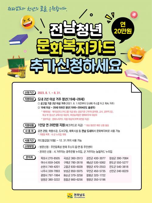 ¹®Èº¹ÁöÄ«µå´Â 10¿ù ÀÌÈÄ ¼øÂ÷ ¹ß±Þ ¿¹Á¤ÀÌ´Ù. Áö¿ø±ÝÀº üũīµå Æ÷ÀÎÆ®·Î Áö±ÞµÈ´Ù. Æ÷ÀÎÆ®´Â Çпø ¼ö°, µµ¼ ±¸ÀÔ, °ø¿¬ °ü¶÷, üÀ°½Ã¼³ ÀÌ¿ë µî Àü³²¿¡¼ ¿¬³» »ç¿ëÇÒ ¼ö ÀÖ´Ù. Ä«µå »ç¿ëó µî ¹®Èº¹ÁöÄ«µå¿¡ ´ëÇÑ ÀÚ¼¼ÇÑ »çÇ×Àº Àü³²µµ³ª ½Ã±º ´©¸®Áý °í½Ã¡¤°ø°í¶õ¿¡¼ È®ÀÎÇÒ ¼ö ÀÖ´Ù.