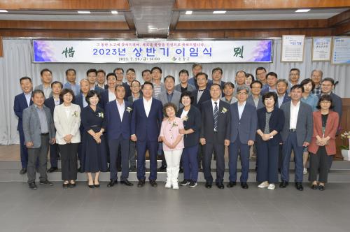 ¿À·£ ±â°£ Áö¿ªÀ» À§ÇØ Çå½ÅÇØ ¿Â °ø¹«¿øµéÀÇ ¿µ¿¹·Î¿î °øÁ÷»ýȰ ¸¶¹«¸®¸¦ ±â³äÇÏ°í ³ë°í¸¦ °Ý·ÁÇϱâ À§ÇØ ¸¶·ÃÇÑ À̳¯ ÀÌÀӽĿ¡´Â ÅðÁ÷ ¿¹Á¤°ø¹«¿ø 7¸í°ú °¡Á·, ÈÄ¹è °ø¹«¿øµéÀÌ Âü¼®ÇÑ °¡¿îµ¥ ÁøÇàµÆ´Ù.