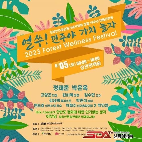 Áö¿ªÀÇ ¹ÎÁÖȿ °øÇåÀÚ¿Í ½Ã¹Î»çȸ Ȱµ¿°¡´Â ¹°·Ð Æí¹é½£À» ã´Â µµ¹Îµé ´©±¸³ª °¡Á·º°, ´Üüº° Âü¿©°¡ °¡´ÉÇϸç, ÁÖ¿ä Çà»ç·Î Æí¹é½£ °È±â, ³ëõÀ¯È²ÅÁ Á·¿å, À̺οµ ÀÚÀ¯¾ð·Ð½ÇõÀç´Ü ¸í¿¹ÀÌ»çÀåÀÇ ÅäÅ©ÄܼƮ ½Ã±¹°¿¬, °í¾ç°ï ¸íâ, ±è¹ÌÇý °í¼ö, ±è¼ºÅà ÿ¸®½ºÆ®, ¹ÚÁؼ® Å׳Ê, ¹êµåÁÒ ¾îÄí½ºÆ½ µà¿À, ¹ÚÈñ¼ö ½Ì¾î¼Û¶óÀÌÅÍ, ¹ÚÀο À½¾Ç°¡ µîÀÌ Ã⿬ÇÏ´Â ÆÇ¼Ò¸®, Ŭ·¡½Ä, ¹êµå °ø¿¬°ú ÇÔ²² Èú¸µ ¹ÂÁ÷ÄܼƮ°¡ ÆîÃÄÁö¸ç, Á¤ÅÂÃá, ¹ÚÀº¿Á ÃÊû°ø¿¬ÀÌ ´ë¹Ì¸¦ Àå½ÄÇÑ´Ù.