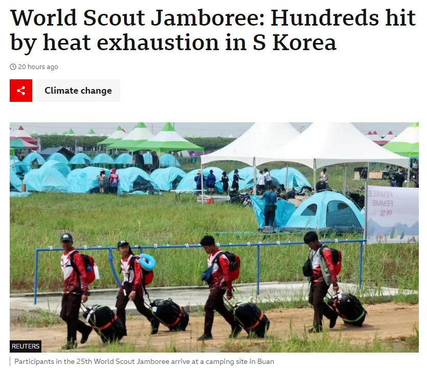 Hundreds of participants at the 25th World Scout Jamboree in Buan, South Korea have been hit by heat exhaustion.