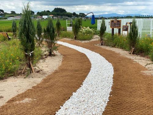 ¿ì¼±, ÁÖÂ÷Àå¿¡¼ ³îÀÌÅÍ·Î °¡´Â ÁøÀԷθ¦ ±âÁ¸ Èë¹Ù´Ú¿¡¼ ¾ßÀÚ¸ÅÆ®¿Í Á¶¾àµ¹ÀÌ ±ò¸° °í±Þ½º·¯¿î »êÃ¥±æ·Î ¹Ù²Ù°í ±ºµ¥±ºµ¥ º¥Ä¡¿Í Á¶°æ¼ö¸¦ ¹èÄ¡ÇÏ¿© ½¯ °ø°£À» Ãß°¡Çß´Ù.