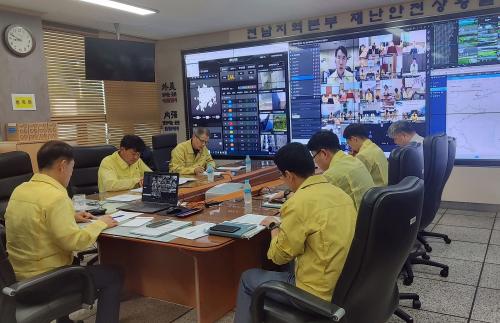 ÇöÀç Àü³²º»ºÎ´Â ÅÂdz Á¾·á ½Ã±îÁö Àç³¾ÈÀü»óȲ½ÇÀ» Áß½ÉÀ¸·Î ÅÂdz À̵¿»óȲÀ» ½Ç½Ã°£ ¸ð´ÏÅ͸µÇÏ´Â ÇÑÆí Æ¯º°ÇÑ ´ëºñ ż¼¸¦ À¯ÁöÇϸç Àη°ú Àåºñ µî °¡¿ëÀÚ¿øÀ» ÃÖ´ëÇÑ È°¿ëÇÏ¿© ´ëÀÀÇÑ´Ù´Â ¹æÄ§ÀÌ´Ù.