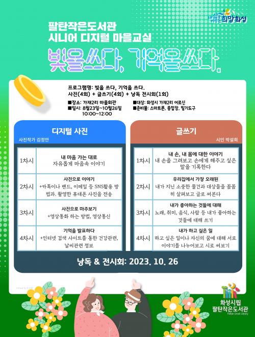 ¡®ºûÀ» ¾²´Ù¡¯ ½Ã°£¿¡´Â Á¤º¸È½Ã´ë¿¡ °É¸ÂÀº ´Ù¾çÇÑ ½º¸¶Æ®Æù ¾Û ÀÌ¿ë¹æ¹ý°ú ¸ÚÁø »çÁøÀ» Âï´Â ¹ý µî Á¤º¸È ±³À°ÀÌ ÁøÇàµÈ´Ù. ¡®±â¾ïÀ» ¾²´Ù¡¯ ½Ã°£¿¡´Â Á÷Á¢ ÂïÀº »çÁøÀ» ¹ÙÅÁÀ¸·Î ±ÛÀ» ¾²¸ç ÀÚ½ÅÀÇ °ú°Å¿Í ÇöÀ縦 ±â·ÏÇÏ°í ¹Ì·¡¸¦ °èÈ¹ÇØº¸´Â ½Ã°£À» °¡Áú ¿¹Á¤ÀÌ´Ù.