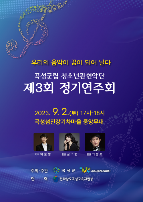 Á¦3ȸ Á¤±â¿¬ÁÖȸ¿¡¼´Â °üÇö¾Ç´ÜÀ» Áö¿øÇØ ¿Â ±â°üÀÇ ³»ºó°ú Çкθ𸦠ÃÊÃ»ÇØ, ´Ü¿øµéÀÌ Áö³ ÇÑ ÇØ µ¿¾È ¼º½ÇÈ÷ ¿¬½ÀÇÑ °îµéÀ» ¼±º¸ÀÏ ¿¹Á¤ÀÌ´Ù. ¿õÀåÇÑ 'ij¸®ºñ¾ÈÀÇ ÇØÀû' OSTºÎÅÍ °¨¹Ì·Î¿î 'ÀλýÀÇ È¸Àü¸ñ¸¶'±îÁö ÃÑ 12°îÀÇ ´Ùä·Î¿î ÇÁ·Î±×·¥ÀÌ ÁغñµÇ¾î ÀÖ´Ù. ¶ÇÇÑ ¹ÂÁöÄà ¹è¿ì ±è¼ÒÇö°ú ÃÖ¿ëÈ£°¡ ÇÔ²²ÇÏ´Â Çù¿¬°îÀ» ÅëÇØ ´Ù¾çÇÑ À½¾Ç À帣¸¦ ¸¸³ªº¼ ¼ö ÀÖ´Â ±âȸµµ ¸¶·ÃµÆ´Ù.