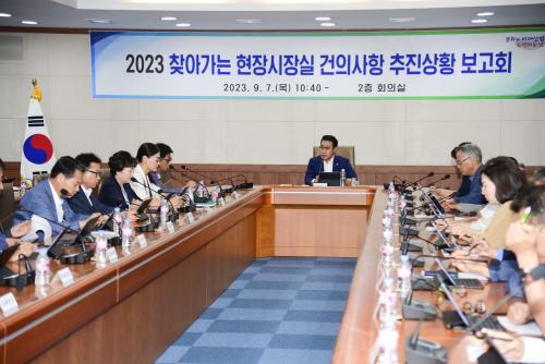 À̹ø º¸°íȸ´Â Áö³ 7¿ù 23°³ À¾¸éµ¿ ¼øÈ¸¹æ½ÄÀ¸·Î ÁøÇàµÈ ¡®Ã£¾Æ°¡´Â ÇöÀå½ÃÀå½Ç¡¯¿¡¼ °ÇÀÇµÈ »çÇ׿¡ ´ëÇØ À¾¸éµ¿º° ÃßÁø»óȲÀ» Á¡°Ë‧°ü¸®Çϱâ À§ÇØ ¸¶·ÃµÈ ÀÚ¸®·Î ½Ã¹ÎÀÌ Á¦¾ÈÇÑ ÃÑ363°ÇÀÇ °ÇÀÇ Ç׿¡ ´ëÇÏ¿© ÃßÁø»óȲÀ» È®ÀÎÇϰí Á¶Ä¡°¡ ÇÊ¿äÇÑ »ç¾È¿¡ ´ëÇØ¼´Â ÇØ°á ¹æ¾ÈÀ» ¸¶·ÃÇϴµ¥ ÁßÁ¡À» µ×´Ù.