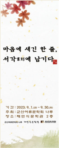 À̹ø Àü½Ã´Â Áö¿ª¿¡¼­ Ȱµ¿Çϰí ÀÖ´Â ±º»ê ¿©·ù ¹®ÇдÜüÀÎ ¡®³ª·ç¡¯È¸¿øµéÀÌ ¡®¸¶À½¿¡ »õ±ä ÇÑ ÁÙ, ¼­°¢(ßöʾ)¿¡ ³²±â´Ù¡¯´Â ÁÖÁ¦·Î âÀÛ ½Ã³ª ÇÑ ÁÙ ¸í¾ðÀ» ´Ùä·Î¿î ¼­Ã¼ ¹× µðÀÚÀÎÀ¸·Î ³ª¹«¿¡ Ç¥ÇöÇÑ ¼­°¢ ÀÛǰ 18Á¡À» ¼±º¸ÀδÙ.