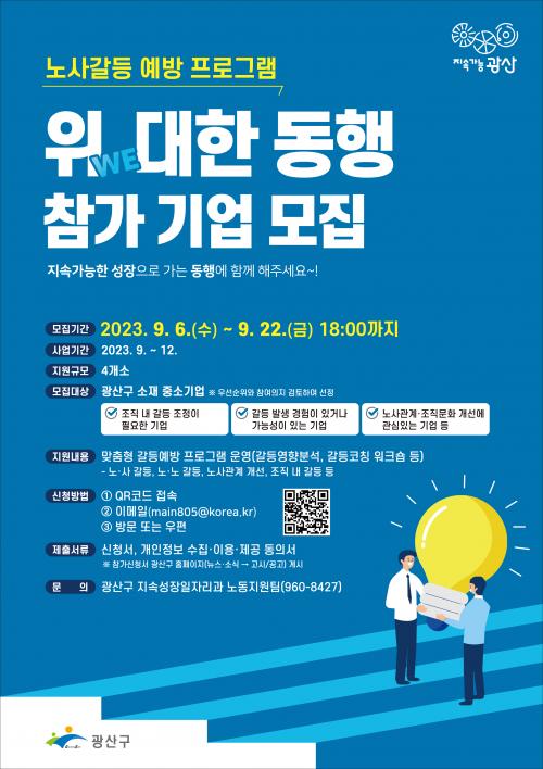 ±¤»ê±¸¿¡ ¼ÒÀçÇÑ Áß¼Ò±â¾÷ Áß Á¶Á÷ ³» °¥µî Á¶Á¤ÀÌ ÇÊ¿äÇÑ ±â¾÷, °¥µî ¹ß»ý °æÇèÀÌ ÀÖ´Â ±â¾÷, ³ë»ç°ü°è °³¼±¿¡ °ü½ÉÀÌ ÀÖ´Â ±â¾÷ µîÀ» ´ë»óÀ¸·Î 22ÀϱîÁö Âü¿©±â¾÷À» ¸ðÁýÇÑ´Ù.