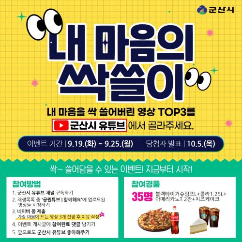 ¡®³» ¸¶À½ÀÇ ½Ï¾µÀÌ¡¯ À̺¥Æ®´Â ½Ã °ø½Ä À¯Æ©ºê ä³Î¿¡ ¾÷·ÎµåµÈ ¿µ»ó Áß °¡Àå ¸¶À½¿¡ µç ¿µ»ó 3°¡Áö¸¦ ¼±Á¤ÇØ ¼±Á¤ ÀÌÀ¯¿Í ÇÔ²² °Ô½Ã¹°À» ¿Ã¸®¸é ÇÇÀÚ¿Í Ä¿ÇÇ ÄíÆùÀ» Á¦°øÇÏ´Â À̺¥Æ®´Ù.