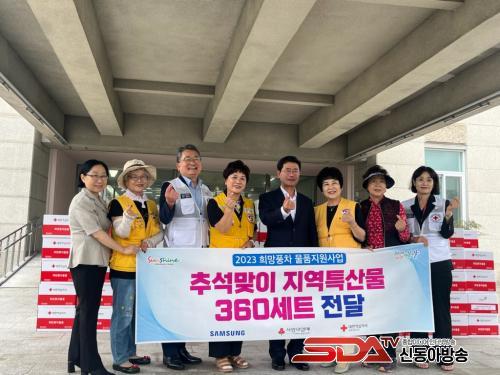 Ãß¼®¸ÂÀÌ Áö¿ªÆ¯»ê¹° ¼¼Æ® Àü´ÞÀº »ï¼º¿¡¼­ ÈÄ¿øÇØ Èñ¸ÁdzÂ÷ ¹°Ç°Áö¿ø»ç¾÷À¸·Î ÃßÁøµÆ´Ù. ÈÄ¿ø ¹°Ç°Àº Áö¿ªÆ¯»ê¹° ¡ã¹é¹Ì 3kg ¡ãÀâ°î 1kg ¡ã¹Ì¿ª 100g ¡ãÁ¶¹Ì±è 1ÆÑ(16°³ÀÔ) ¡ã°ÇÇ¥°í¹ö¼¸ 100g µî ½Ä·áǰÀ¸·Î ±¸¼ºµÆ´Ù.