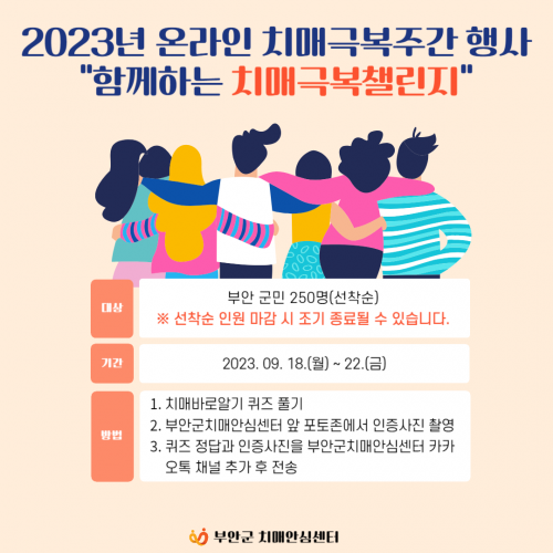 [½Åµ¿¾Æ¹æ¼Û=À¯¸íÁø±âÀÚ] ºÎ¾È±º Ä¡¸Å¾È½É¼¾ÅÍ´Â Á¦16ȸ Ä¡¸Å ±Øº¹ÀÇ ³¯(9¿ù 21ÀÏ)À» ¸ÂÀÌÇÏ¿© ºÎ¾È±º¹ÎÀ» ´ë»óÀ¸·Î ¡°ÇÔ²²ÇÏ´Â Ä¡¸Å±Øº¹Ã§¸°Áö¡± ÁÖ°£Çà»ç¸¦ 9¿ù 18ÀÏ(¿ù)ºÎÅÍ 22ÀÏ(±Ý)±îÁö ÁøÇàÇÑ´Ù.
