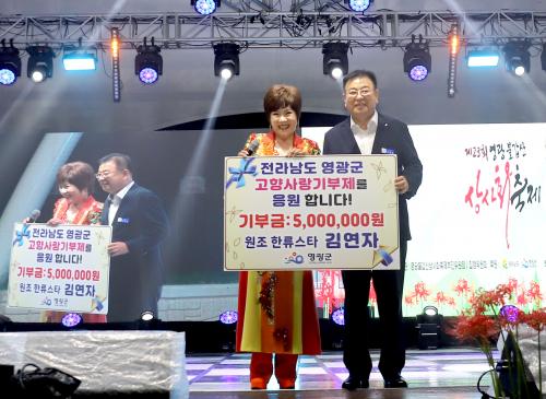 °Á¾¸¸ ¿µ±¤±º¼ö´Â ¡°¿µ±¤±º °íÇâ»ç¶û±âºÎÁ¦¸¦ ÀÀ¿øÇØ ÁֽŠ´ëÇѹα¹ ÃÖ°íÀÇ °¡¼ö ±è¿¬ÀÚ´Ô²² Áø½ÉÀ¸·Î °¨»çµå¸®¸ç, ÀÀ¿ø¿¡ ÈûÀÔ¾î ±âºÎÇØ ÁֽмÒÁßÇÑ ±âºÎ±ÝÀº ¿µ±¤±º ¹ßÀü¿¡ º¸ÅÆÀÌ µÇµµ·Ï Çϰڴ١±°í ¸»Çß´Ù.