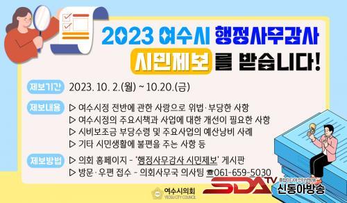 [½Åµ¿¾Æ¹æ¼Û=±è¿ëÈÆ ±âÀÚ] ¿©¼ö½ÃÀÇȸ(ÀÇÀå ±è¿µ±Ô)´Â 10¿ù 2ÀϺÎÅÍ 20ÀϱîÁö 19ÀÏ °£ ÇàÁ¤»ç¹«°¨»ç ½Ç½Ã¸¦ À§ÇØ ½Ã¹ÎÁ¦º¸¸¦ ¹ÞÀ» °èȹÀ̶ó°í ¹àÇû´Ù.