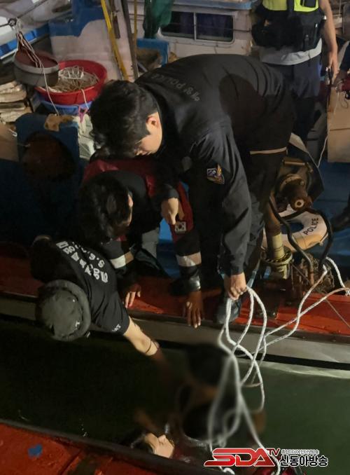 ¿©¼öÇØ°æÀº ½Å°íÁ¢¼ö ÈÄ ÆÄÃâ¼Ò ¿¬¾È ±¸Á¶Á¤°ú ±¸Á¶´ë°¡ ½Å¼ÓÈ÷ Ãâµ¿ÇØ ½Å°íÁ¢¼ö 5ºÐ ¸¸¿¡ ÇØ°æ±¸Á¶´ë°¡ ÇöÀå¿¡ µµÂøÇÏ¿© ÀͼöÀÚ A¾¾°¡ °è·ù¾î¼± »çÀÌ ÈÓ´Ù(¼±¹Ú Ãæ°Ý¹æÁö µµ±¸)¸¦ Àâ°í ÀÖ´Â °ÍÀ» È®ÀÎÇÏ°í ¹«»çÈ÷ ±¸Á¶Çß´Ù.