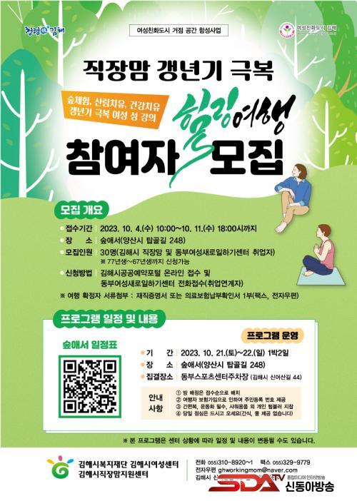 [½Åµ¿¾Æ¹æ¼Û´º½º=ÃÖ¼ÛÈ­±âÀÚ] (Àç)±èÇØ½Ãº¹ÁöÀç´Ü ±èÇØ½Ã¿©¼º¼¾ÅÍ(Á÷À帾Áö¿ø¼¾ÅÍ)´Â ¿©¼ºÄ£È­µµ½Ã °ÅÁ¡ °ø°£ ÇÔ¼º»ç¾÷ÀÇ ÀÏȯÀ¸·Î 10. 21.(Åä)~22.(ÀÏ) 1¹Ú 2ÀÏ ¡º Á÷À帾 °»³â±â ±Øº¹ Èú¸µ¿©Çà ¡»À» ¿î¿µÇÑ´Ù.