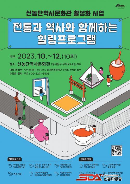 µ¿´ë¹®¹®È­Àç´Ü(´ëÇ¥ÀÌ»ç ±è°æ¿í)Àº ¼±³ó´Ü¿ª»ç¹®È­°ü Ȱ¼ºÈ­¸¦ À§ÇØ 10¿ùºÎÅÍ 12¿ù±îÁö ¡®ÀüÅë°ú ¿ª»ç¿Í ÇÔ²²ÇÏ´Â Èú¸µ ÇÁ·Î±×·¥¡¯À» ¿î¿µÇÑ´Ù.