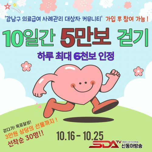 [½Åµ¿¾Æ¹æ¼Û °­³²=À̽ŵ¿±âÀÚ]°­³²±¸°¡ ¿À´Â 12ÀÏ~13ÀÏ Ã£¾Æ°¡´Â ÀÇ·á±Þ¿© ¼ö±ÞÀÚ ±³À°À» 4³â ¸¸¿¡ ½Ç½ÃÇÑ´Ù. ÀÌ ±³À°°ú ¿¬°èÇØ ¼ö±ÞÀÚµéÀÇ °Ç°­ÁõÁøÀ» À§ÇØ ¡®10Àϰ£ 5¸¸º¸ °È±â 縰Áö¡¯µµ ÇÔ²² ÁøÇàÇÑ´Ù.