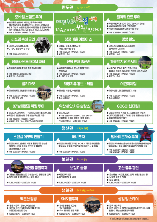 ¡®Ã»Á¤ ¿Ïµµ °¡À» ¼¶ ¿©Ç࡯Àº ¡®Ä¡À¯ÀÇ ¹Ù´Ù, ¿Ïµµ¿¡ ¹ÝÇÏ´Ù!¡¯¶ó´Â ÁÖÁ¦·Î ±º¹Î°ú °ü±¤°´ÀÌ ¼¶°ú °¡À»ÀÇ ¸Å·ÂÀ» ¸¸³£ÇÒ ¼ö ÀÖµµ·Ï ´Ù¾çÇÑ ÇÁ·Î±×·¥À» ¸¶·ÃÇß´Ù.