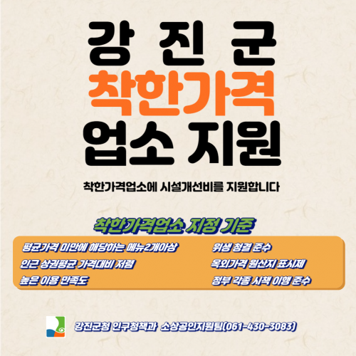 ÂøÇѰ¡°Ý¾÷¼Ò ÁöÁ¤ ±âÁØÀº °Áø±º ¼ÒÀç ¿Ü½Ä¾÷, ÀÌ¡¤¹Ì¿ë¾÷, ¼¼Å¹¾÷ µî ¼ºñ½º ¾÷Á¾ °¡¿îµ¥ ¡ãÆò±Õ °¡°Ý ¹Ì¸¸¿¡ ÇØ´çÇÏ´Â ¸Þ´º 2°³ ÀÌ»ó ¡ãÀα٠»ó±Ç Æò±Õ °¡°Ý ´ëºñ Àú·Å ¡ã³ôÀº ÀÌ¿ë ¸¸Á·µµ ¡ãÀ§»ý¡¤Ã»°á Áؼö ¡ã¿Á¿Ü°¡°Ý¡¤¿ø»êÁö Ç¥½ÃÁ¦ µî Áß¾Ó ¹× ÁöÀÚü °¢Á¾ ½ÃÃ¥ ÀÌÇà µîÀ» ÁؼöÇÑ ¾÷ü °¡¿îµ¥ ¼±Á¤µÈ´Ù.