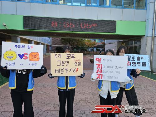 ±¤¿µ°íµîÇб³ Çлýȸ Çлýµé°ú û¼Ò³â ¹®È¼¾ÅÍ Ã»¼Ò³âÀÚ¿øºÀ»ç´Ü Uni ÇлýµéÀÌ ÇÔ²² ÁøÇàÇÑ ÀÌ Ä·ÆäÀο¡¼ ¹Ù¸¥ ¸»À» »ç¿ëÇÏÀÚ´Â ÇÇÄÏ ¼±Àü°ú ÇÔ²² ¹Ù¸¥ ¸» »ç¿ë ¹èÁö¸¦ Çлýµé¿¡°Ô Àü´ÞÇÏ¿´´Ù.