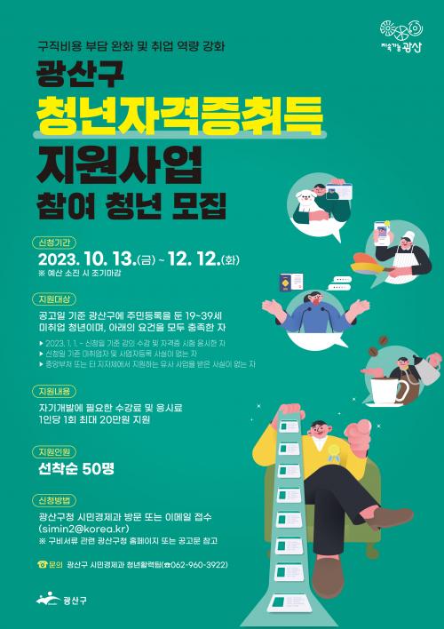 ±¤»ê±¸´Â 12¿ù 12ÀϱîÁö »ç¾÷¿¡ Âü¿©ÇÒ Ã»³âÀ» ¸ðÁýÇÑ´Ù. ´ë»óÀº °ø°íÀÏ(10¿ù13ÀÏ) ±âÁØ ±¤»ê±¸¿¡ Áֹεî·ÏÀ» µÐ 19¼¼~39¼¼ ¹ÌÃë¾÷ û³â 50¸íÀÌ´Ù.