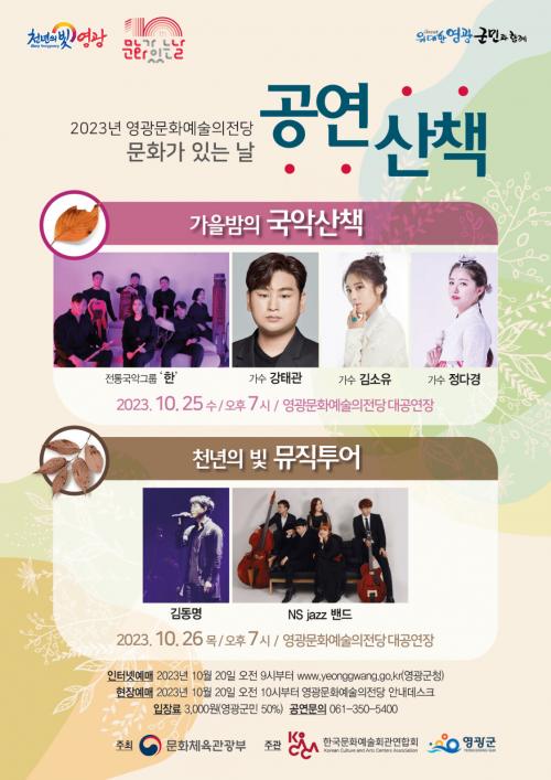 À̹ø °ø¿¬Àº ¹®ÈüÀ°°ü±¤ºÎ°¡ ÁÖÃÖÇϰí Çѱ¹¹®È¿¹¼úȸ°ü¿¬ÇÕȸ, ¿µ±¤±ºÀÌ ÁÖ°üÇÏ¸ç °ü¶÷·á´Â Àü¼®3,000¿ø(1ÀÎ4¸Å ÇÑÁ¤)À̸ç, ÀÔÀå±ÇÀº 10¿ù 20ÀÏ(±Ý)ºÎÅÍ Æ¼ÄϸµÅ©¸¦ ÅëÇØ ÀÎÅÍ³Ý ¿¹¸Å¸¦ Çϰųª ¿µ±¤¹®È¿¹¼úÀÇÀü´ç ¾È³»µ¥½ºÅ©¿¡¼ ÇöÀ忹¸Å°¡ °¡´ÉÇÏ´Ù.