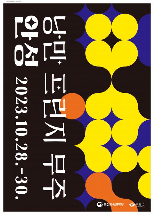 ¡®2023 ³¶¸¸ ÇÁ¸°Áö ¹«ÁÖ–¾È¼º¡¯ÀÇ °ø½Ä Æ÷½ºÅÍ´Â ¹«ÁÖÀÇ ¸¶À»À» ±¸¼ºÇÏ´Â Áֹΰú »óÁ¡, ±×¸®°í °¢ °ø°£°ú ¿¹¼ú¹®ÈÀÇ ±â¹ÝÀÌ µÇ´Â ¾ÆÆ¼½ºÆ®, °ü°´À» ¸ðµÎ 'Á¡'°ú '¼±'À¸·Î Çü»óÈÇÏ°í ¡®¿ø¡¯À¸·Î ¿Ï¼º ½ÃÄÑ ¡®¸ðµÎ°¡ Çϳª·Î ¾î¿ì·¯Áü¡¯À» Ç¥ÇöÇß´Ù.