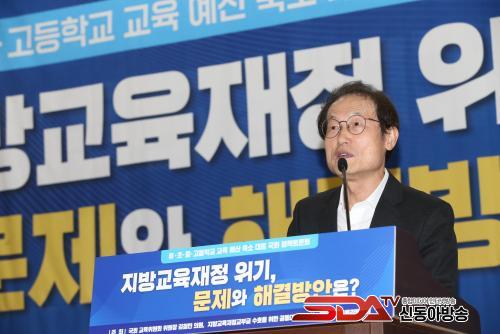 Åä·Ðȸ ÇöÀå¿¡´Â ´õºÒ¾î¹ÎÁÖ´ç °¹ÎÁ¤ ÀÇ¿øµµ Âü¼®ÇÏ¿© ¡®±³À°¿¹»êÀ» ÇԺηΠÁÙÀÌ´Â °ÍÀº ¿ì¸®ÀÇ ¹Ì·¡¸¦ Æ÷±âÇÏ´Â ÀÏ¡¯À̶ó°í ¸»Çϸç Áö¹æ±³À°ÀçÁ¤ È®º¸ÀÇ Á߿伺À» ¿ª¼³ÇÏ¿´´Ù.