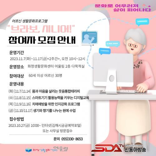 ¡®ºê¶óº¸ ½Ã´Ï¾î¡¯´Â ¾î¸£½ÅµéÀÇ ¸ö°ú ¸¶À½À» µ¹º¸°í »çȸ ÀûÀÀ·ÂÀ» ³ôÀ̱â À§ÇÑ ¿ôÀ½ÅëÇÕ Å×¶óÇÇ, µðÁöÅÐ ±³À°, ÀÎÁö°È ÇÁ·Î±×·¥, ¿ø¿¹¼ö¾÷À» ÁÖÁ¦·Î °¢ 2ȸ¾¿ ÁøÇàµÈ´Ù.