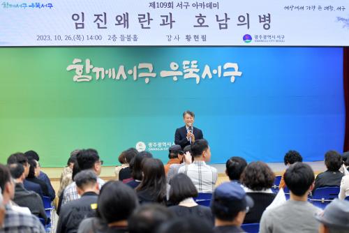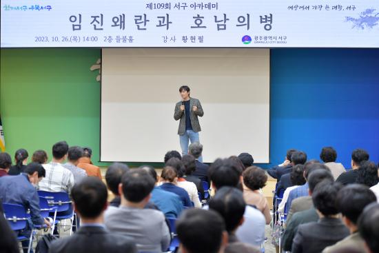 [½Åµ¿¾Æ¹æ¼Û=ÀÌÁöÇö±âÀÚ] ±¤ÁÖ ¼­±¸(±¸Ã»Àå ±èÀ̰­)´Â 26ÀÏ ¿ÀÈÄ µéºÒȦ¿¡¼­ ȲÇöÇÊ ¿ª»ç¹Ù·ÎÀâ±â¿¬±¸¼Ò ¼ÒÀåÀ» ÃÊÃ»ÇØ 'ÀÓÁø¿Ö¶õ°ú È£³²ÀǺ´'À» ÁÖÁ¦·Î Á¦109ȸ ¼­±¸ ¾ÆÄ«µ¥¹Ì¸¦ °³ÃÖÇß´Ù.