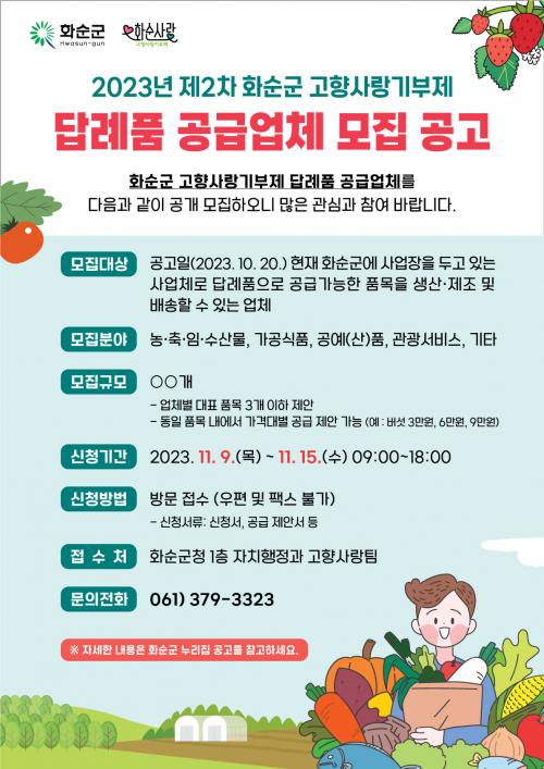ÇöÀç ȼø±º °íÇâ»ç¶û±âºÎÁ¦ ´ä·ÊǰÀ¸·Î ¡ã³ó¡¤Ãà»ê¹°(»þÀθӽºÄ¹, º¹¼þ¾Æ, ½Ò, ÇÑ¿ì) ¡ã°¡°ø½Äǰ(ºÒ¹Ì³ª¸®ÀÎÁø ¾¦Áó, Âü±â¸§, Ä¿ÇÇ µå¸³¹é) ¡ã°ø»êǰ(Ÿ¿ù, µµÀÚ±â) ¡ã°ü±¤ ¼ºñ½º(È޾縲¡¤°íÀε¹ ¿ÀÅäÄ·ÇÎÀå ÀÌ¿ë±Ç, ¾î¸°ÀÌÁ÷¾÷üÇè°ü ÀÌ¿ë±Ç) ¡ã±âŸ(ȼø ÆÊ Æ÷ÀÎÆ®, ȼø»ç¶û»óǰ±Ç, ÁÖÅÃÈÀç ¾ÈÀü ²Ù·¯¹Ì) µî 16°³ ǰ¸ñÀÌ °ø±ÞµÇ°í ÀÖ´Ù.