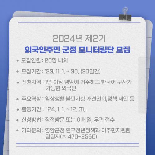 ¿µ¾Ï±º¿¡ 1³â ÀÌ»ó °ÅÁÖÇÑ ¿Ü±¹ÀÎÁֹΠÁß Çѱ¹¾î°¡ °¡´ÉÇÑ 20¿© ¸íÀ¸·Î ¸ð´ÏÅ͸µ´ÜÀº ±¸¼ºµÈ´Ù.