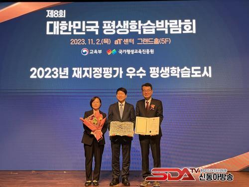 [½Åµ¿¾Æ¹æ¼Û °­³²=À̽ŵ¿±âÀÚ]°­³²±¸°¡ ±³À°ºÎ¿¡¼­ ÁÖÃÖÇÏ´Â Æò»ýÇнÀµµ½Ã ÀçÁöÁ¤ Æò°¡¸¦ Åë°úÇÏ°í ¿ì¼öÆò»ýÇнÀµµ½Ã·Î ¼±Á¤µÅ Áö³­ 2ÀÏ ¡®Á¦8ȸ ´ëÇѹα¹ Æò»ýÇнÀ¹Ú¶÷ȸ¡¯¿¡¼­ ±³À°ºÎÀå°ü ǥâÀ» ¼ö¿©Çß´Ù.