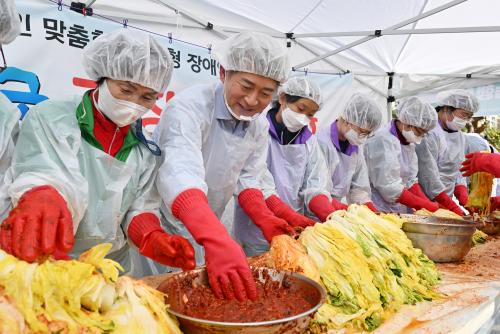 [½Åµ¿¾Æ¹æ¼Û=ÀÌÁöÇö±âÀÚ] ±¤ÁÖ±¤¿ª½Ã ¼­±¸(±¸Ã»Àå ±èÀ̰­)°¡ ¡®Á¦30ȸ ±¤ÁÖ±èÄ¡ÃàÁ¦¡¯ ÇöÀå¿¡¼­ Àå¾ÖÀεé°ú Ưº°ÇÑ Çà»ç¸¦ ÁøÇàÇß´Ù. ±èÀ̰­ ¼­±¸Ã»ÀåÀº 3ÀÏ ¿ÀÀü ±èÄ¡ÃàÁ¦ °³¸·½Ä¿¡ Âü¼®ÇÑ ÈÄ ¡®¼­±¸Çü Àå¾ÖÀÎ ÀÏÀÚ¸® »ç¾÷¡¯¿¡ Âü¿©Çϰí ÀÖ´Â ÁßÁõÀå¾ÖÀÎ ±Ù·ÎÀÚ 15¸í, ¼­±¸»õ¸¶À»ºÎ³àȸ ÀÚ¿øºÀ»çÀÚµé°ú ÇÔ²² ±èÀå±èÄ¡ 200Æ÷±â¸¦ ´ã°¡ ¾î·Á¿î ÀÌ¿ôµé¿¡°Ô Àü´ÞÇß´Ù.