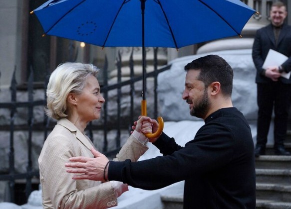 Á©·»½ºÅ°´Â Áö³­ 4ÀÏ ¿ìÅ©¶óÀ̳ª ¼öµµ Ű¿¡ÇÁ¸¦ ¹æ¹®ÇÑ ¿ì¸£ÁÙ¶ó Æùµ¥¾î¶óÀÌ¿£ À¯·´¿¬ÇÕ(EU) ÁýÇàÀ§¿øÀå°ú ¸¸³­ ÀÚ¸®¿¡¼­,