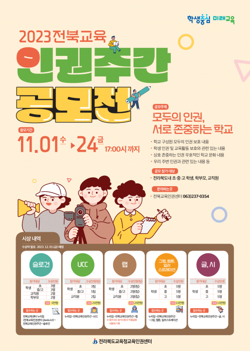 ¡®ÀüºÏ±³À°ÀαÇÁÖ°£¡¯À» ±â³äÇØ ÃßÁøµÇ´Â °ø¸ðÀüÀº Çб³ ±¸¼º¿øÀÌ ´Ù¾çÇÑ ÀÛǰ Ȱµ¿¿¡ Âü¿©ÇØ Àü¶óºÏµµ ±³À° À뱂 ÁÖ°£¿¡ ´ëÇÑ ÀÌÇØµµ¸¦ ³ôÀ̰í, Çб³ ±¸¼º¿øÀÇ ÀαǿìÈ£ÀûÀÎ ÀÛǰ Á¦ÀÛÀ¸·Î Àαǰ¨¼ö¼ºÀ» ÇÔ¾çÇϱâ À§ÇØ ¸¶·ÃµÈ´Ù.